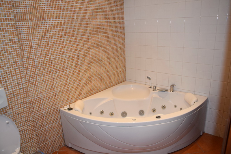 Az alsó szinten helyezkedik a kertkapcsolatos, teljesen gépesített konyha étkezővel.
